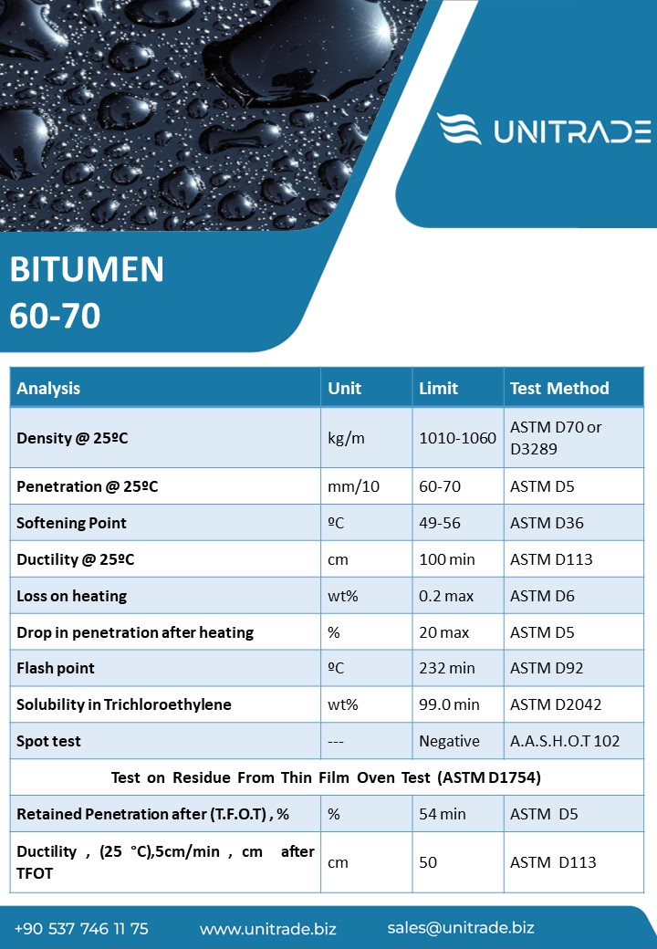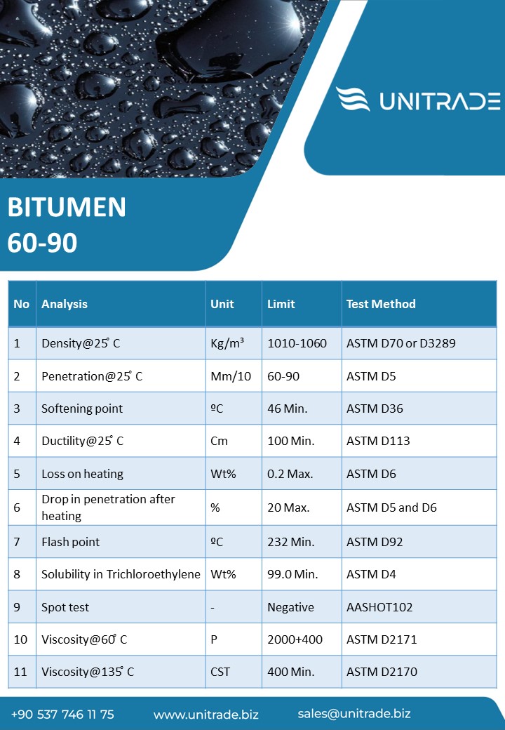 We are supplying Bitumen in different grades of 50/70, 60/70, 60/90 and different types of the packing and shipments. The application of this products is in civil (building & road & bond) construction.