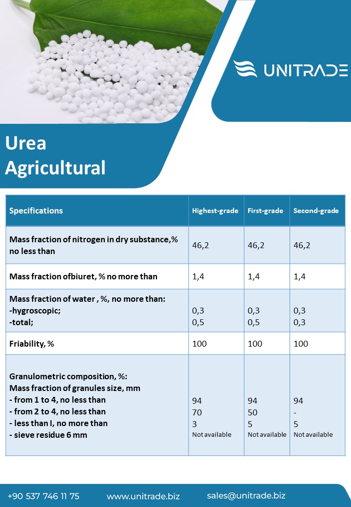 There are two types of Urea in terms of physical shapes: Granular Urea and Prilled Urea. Prilled Urea has smaller granulation.